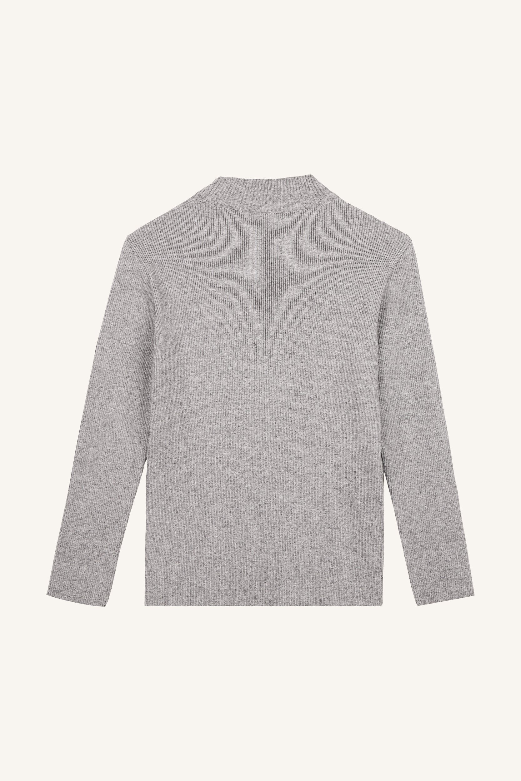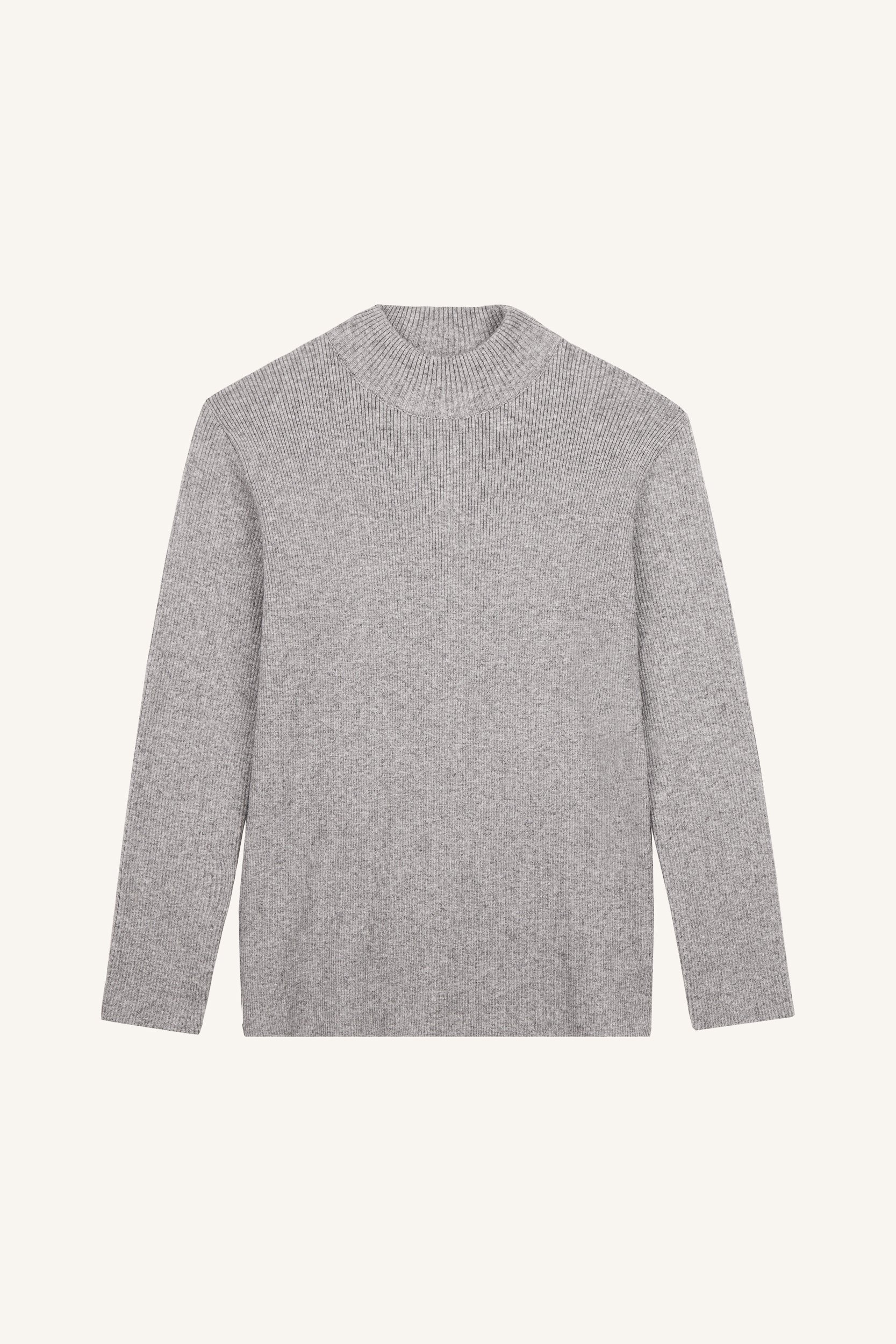 Καθημερινό πλεκτό τοπ φτιαγμένο από νήμα βισκόζης, με λαιμόκοψη rib γκρι