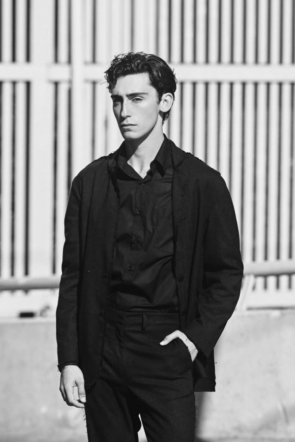Ανδρικό παντελόνι, από βισκόζη και βαμβάκι μαύρο