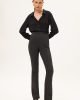 Εφαρμοστό παντελόνι καμπάνα με πλαϊνές τσέπες σχεδιασμένο για εξαιρετική άνεση και κατασκευασμένο από υψηλής ποιότητας ποντοστόφα. Γνωστό για την ανώτερη ελαστικότητα και αντοχή του, το ύφασμα προσφέρει μια κομψή εφαρμογή που αγκαλιάζει το σώμα στους γοφούς και τους μηρούς, πριν ανοίξει αρμονικά από τα γόνατα και κάτω. Αυτό δημιουργεί μια εντυπωσιακή σιλουέτα που επιμηκύνει τα πόδια, ενώ παράλληλα προσφέρει άνεση και ελευθερία κινήσεων, ακολουθώντας τις κινήσεις του σώματος.