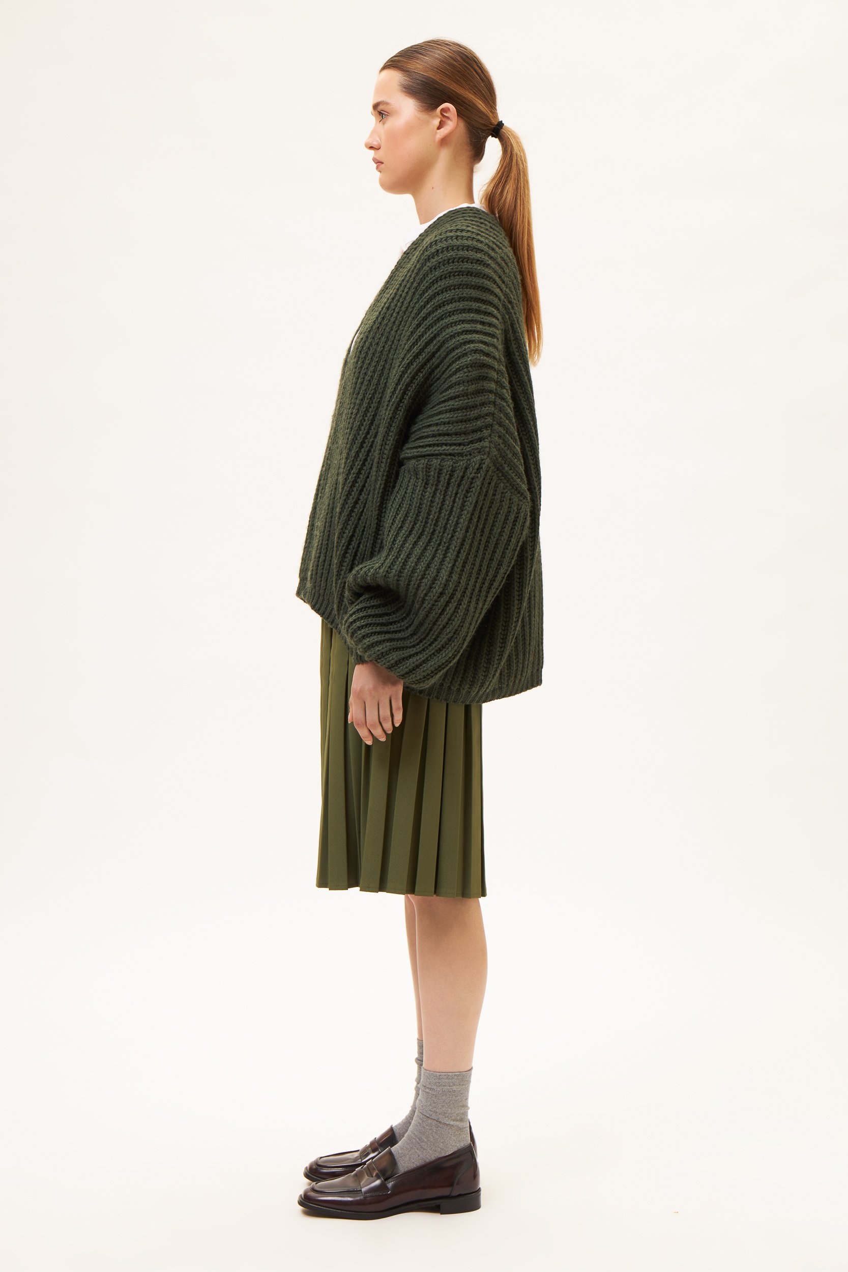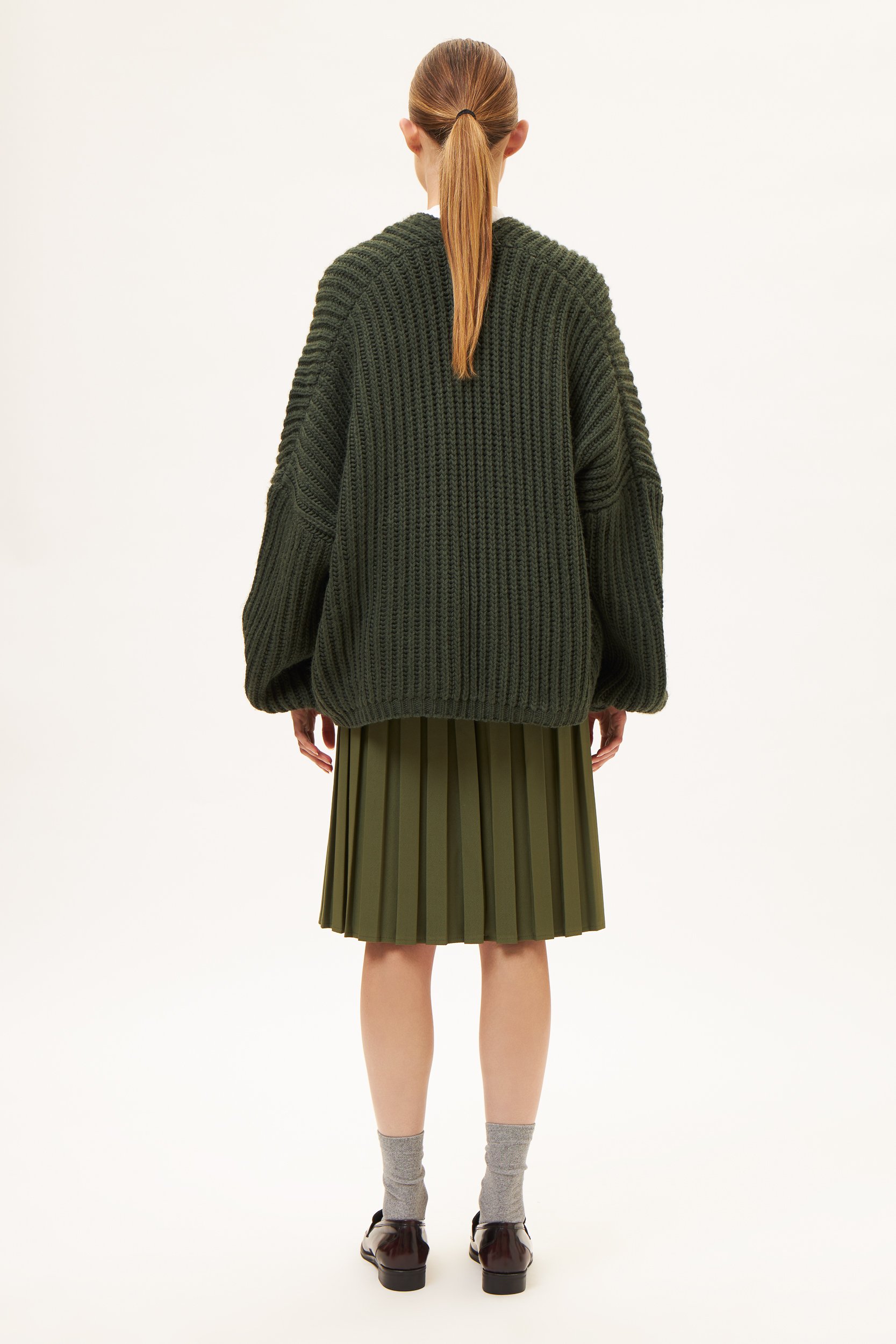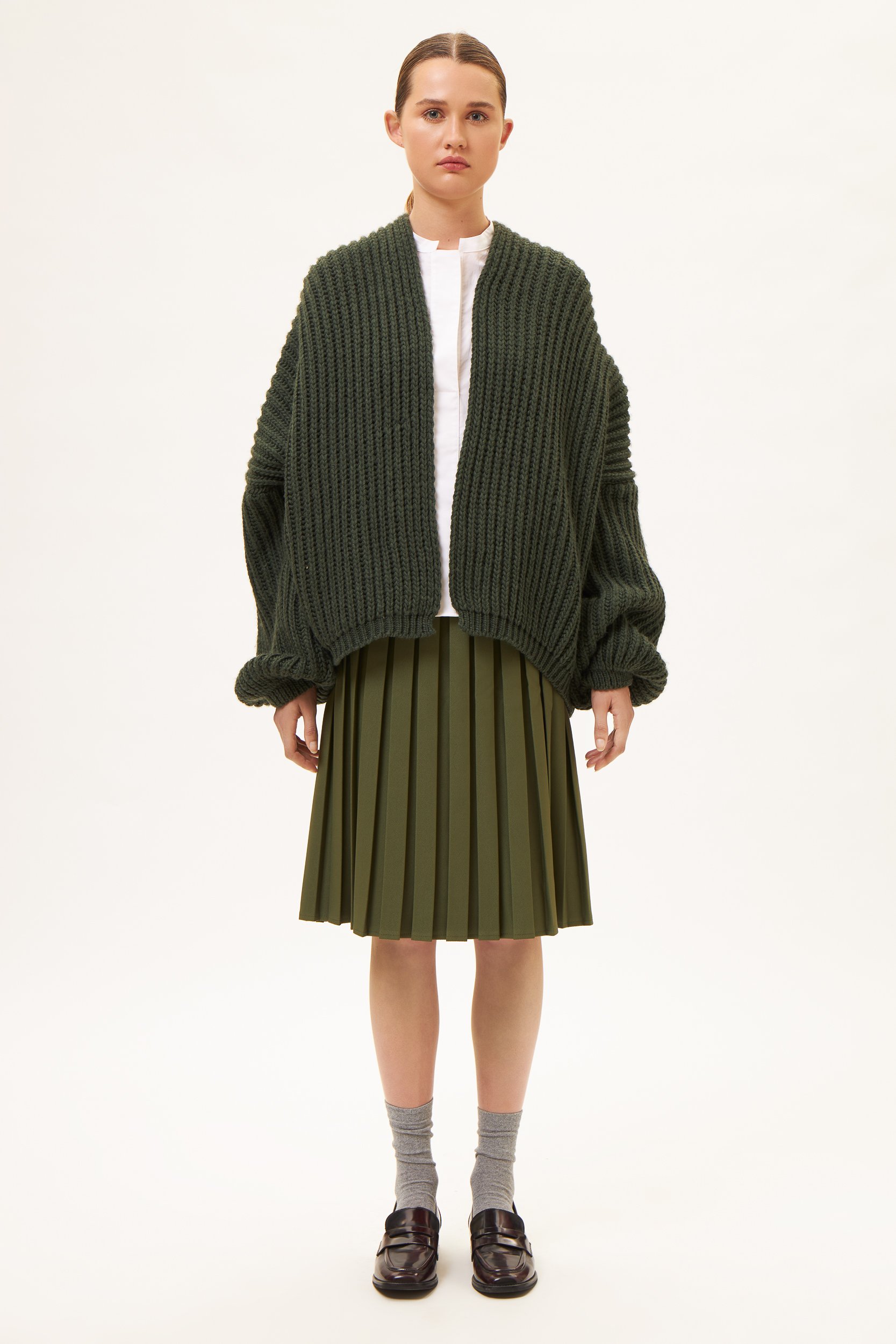 Μίντι φούστα σε κολεγιακό στυλ διαθέτει εφαρμοστή μπάσκα και φερμουάρ στο πλάι. Διαθέσιμη σε χακί και μαύρο, η φούστα συνδυάζει κλασικό στυλ και ευκολία, καθιστώντας την ιδανική τόσο για επίσημες όσο και για casual εμφανίσεις. Το μήκος προσθέτει κομψότητα, ενώ οι συνεχόμενες πιέτες δημιουργούν μια άψογη εμφάνιση.