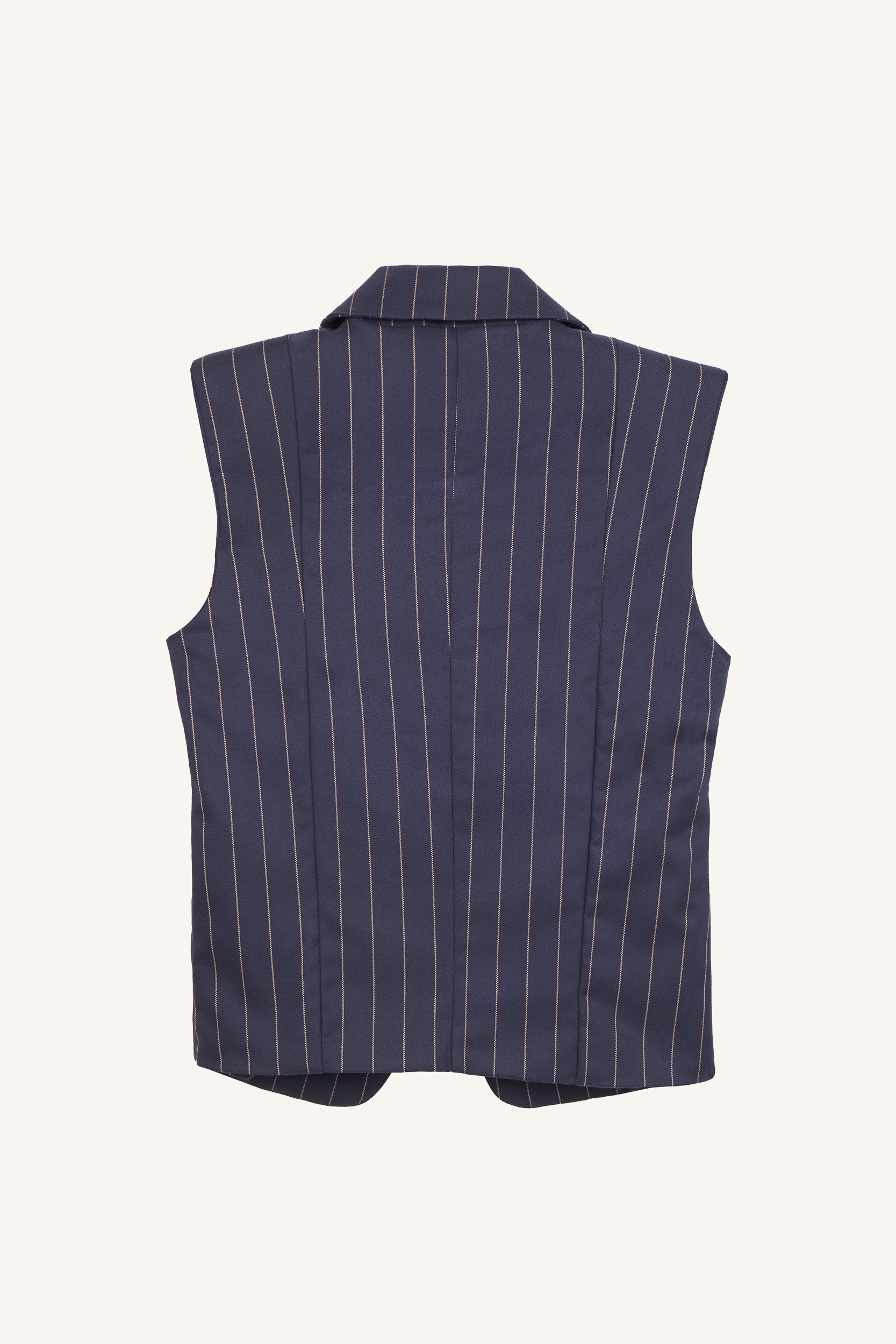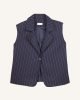 Ριγέ γιλέκο, με κομψό γιακά με πέτα και κλείσιμο με ένα κουμπί μπροστά. Σχεδιασμένο να φοριέται μόνο του ή να συνδυάζεται με το αντίστοιχο παντελόνι για να δημιουργήσει ένα ολοκληρωμένο casual κοστούμι, προσφέρει μια ευέλικτη επιλογή τόσο για χαλαρές όσο και για πιο επίσημες περιστάσεις. Το κλασικό ριγέ μοτίβο προσθέτει μια αίσθηση διαχρονικής κομψότητας, ενώ η λιτή σιλουέτα εξασφαλίζει άνετη και εκλεπτυσμένη εφαρμογή. Διατίθεται σε μπλε και καφέ.