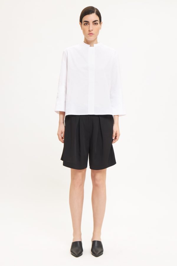Κοντομάνικη μπλούζα με όρθιο γιακά μαύρη