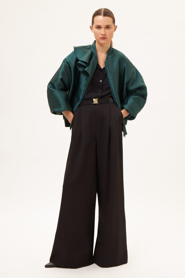 Bomber τζάκετ με διακοσμητικό βολάν πράσινο