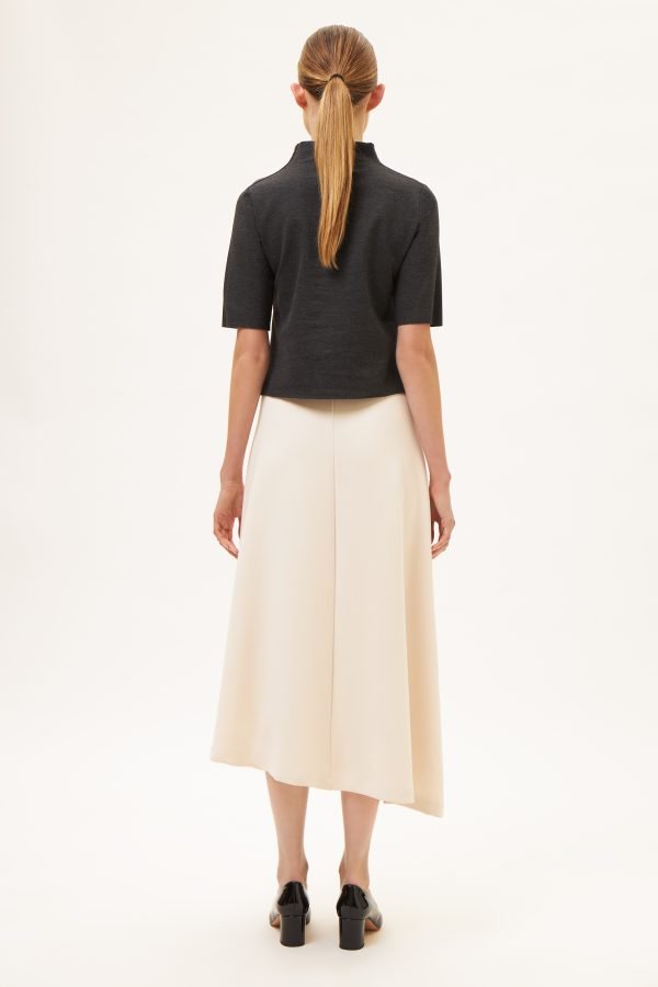 Κοντομάνικο τοπ με ασύμμετρο ντραπέ γκρι