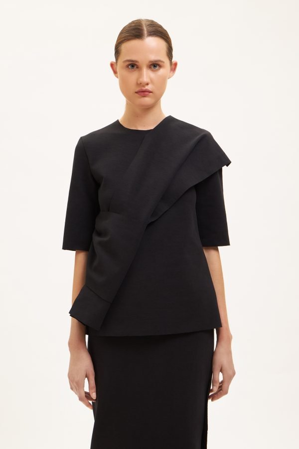 Κοντομάνικο τοπ με ασύμμετρο ντραπέ μαύρο