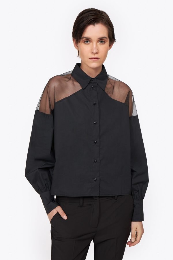 Μακρυμάνικο πουκάμισο με διαφάνεια, μαύρο