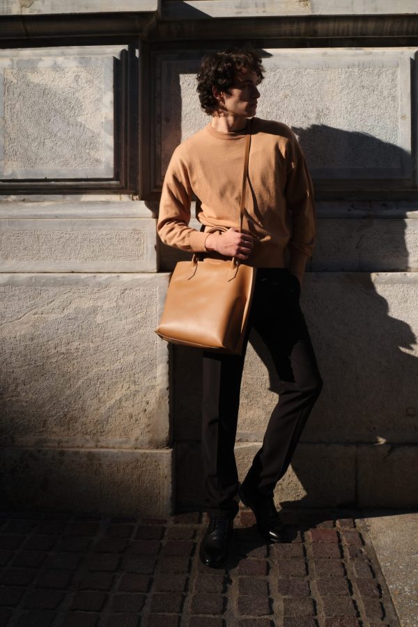 Πλεκτό τοπ με άνετη εφαρμογή μπεζ