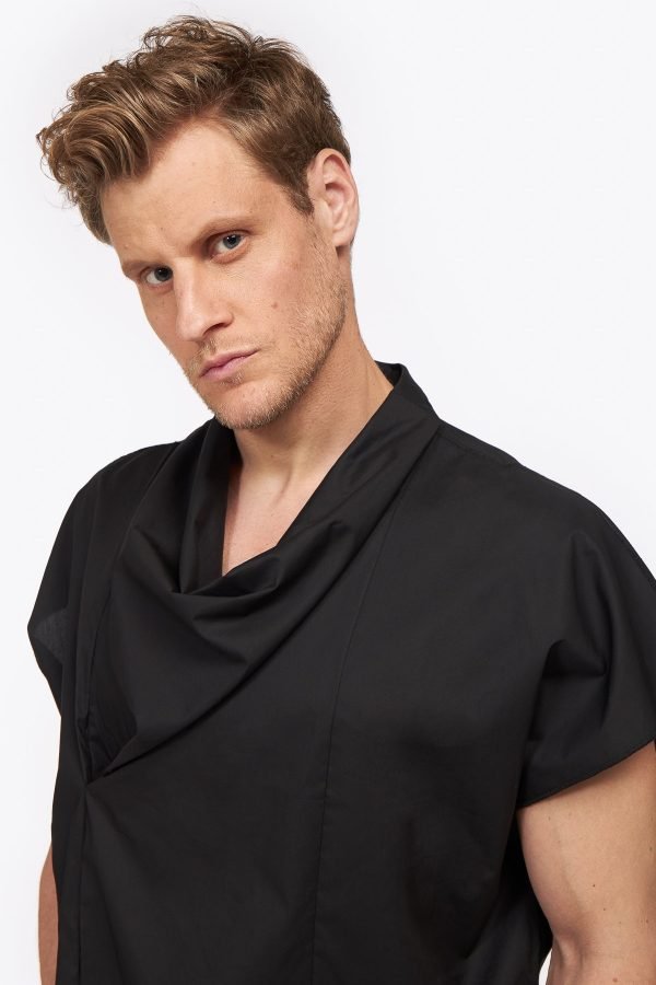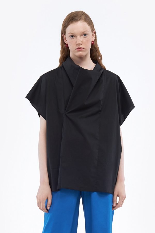 • Μπλούζα με ντραπέ λαιμόκοψη μαύρη