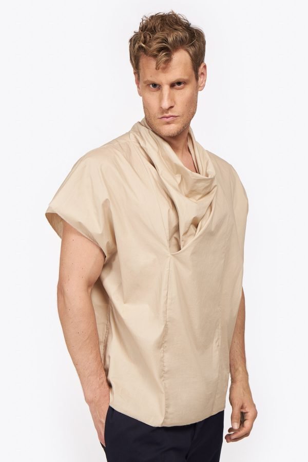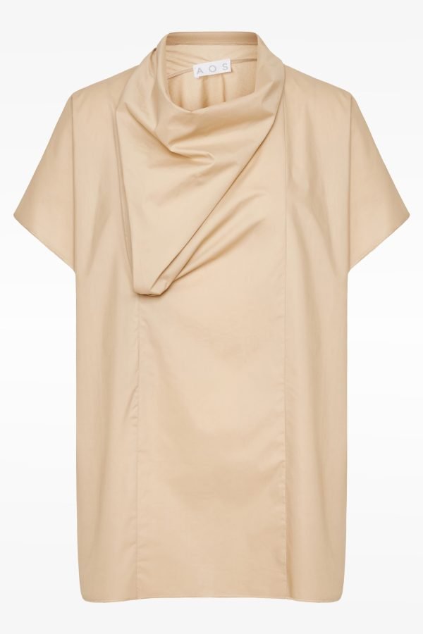 • Μπλούζα με ντραπέ λαιμόκοψη μπεζ