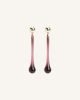 Κομψά μακριά σκουλαρίκια, κατασκευασμένα από διάφανο μπορντό γυαλί με κούμπωμα σε χρυσό χρώμα.