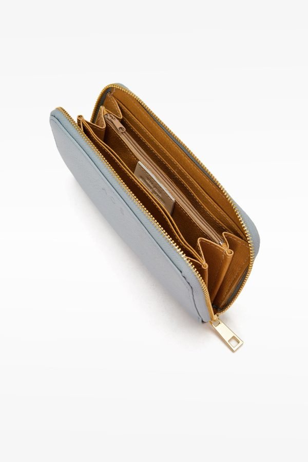 • Μεσαίου μεγέθους δερμάτινο πορτοφόλι με φερμουάρ, γκρι του πάγου