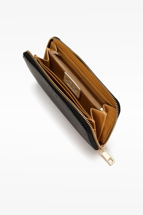 • Μεγάλου μεγέθους δερμάτινο πορτοφόλι με φερμουάρ, μαύρο
