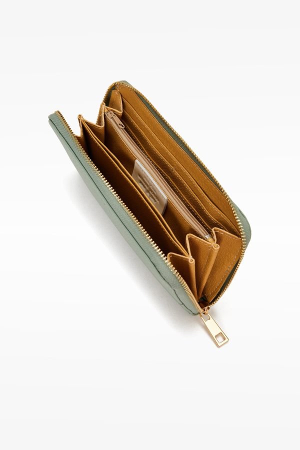 Μεγάλου μεγέθους δερμάτινο πορτοφόλι με φερμουάρ, πράσινο της μέντας