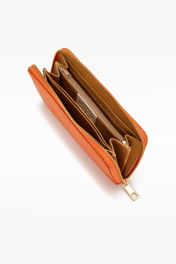Μεγάλου μεγέθους δερμάτινο πορτοφόλι με φερμουάρ, πορτοκαλί