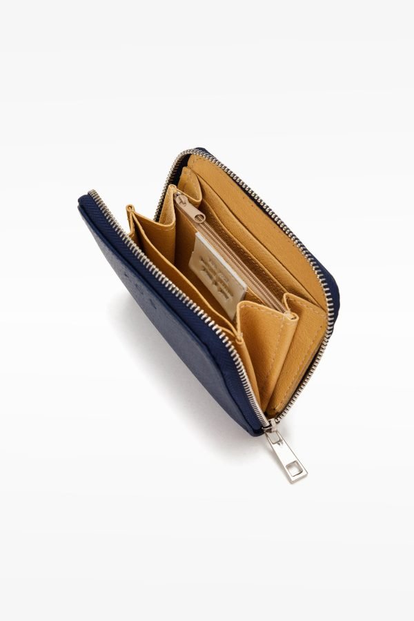 • Μεσαίου μεγέθους δερμάτινο πορτοφόλι με φερμουάρ, ναυτικό μπλε