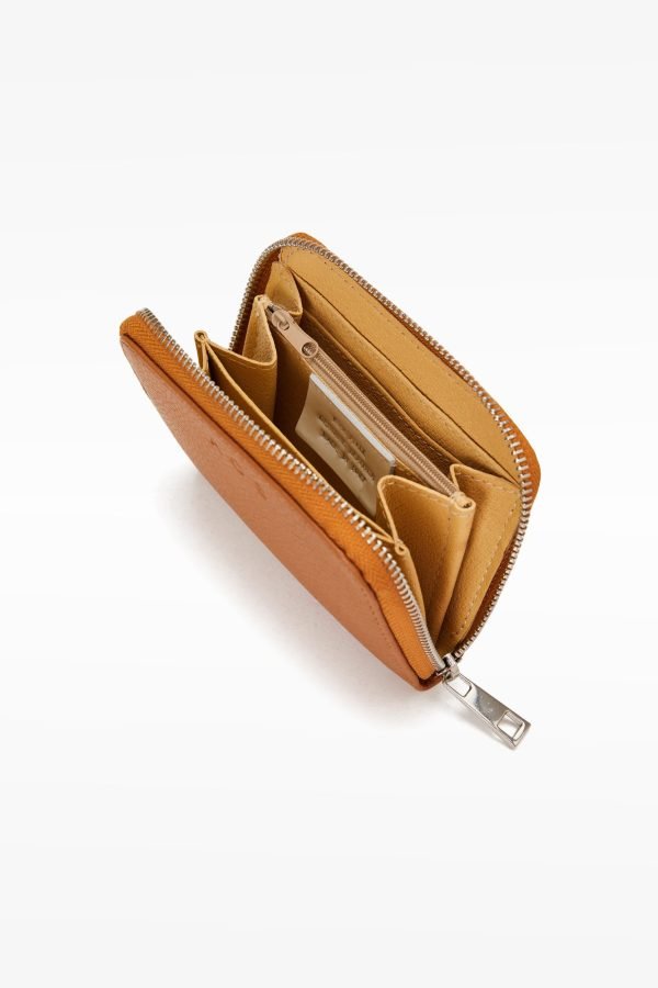 • Μεσαίου μεγέθους δερμάτινο πορτοφόλι με φερμουάρ, στο χρώμα του κεχριμπαριούOut of Stock