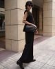 Δερμάτινη τσάντα hobo μεσαίου μεγέθους μαύρη