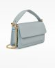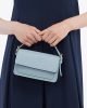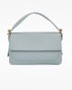 Μικρή γαλάζια δερμάτινη τσάντα με καπάκι