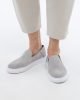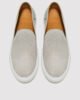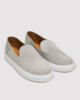 Παπούτσια κατασκευασμένα από σουέτ και δέρμα, σχεδιασμένα με επίπεδη σόλα από καουτσούκ, δερμάτινο πάτο με το λογότυπο, και στρογγυλή μύτη.