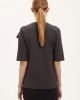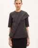 Κοντομάνικο τοπ με ασύμμετρο ντραπέ γκρι