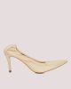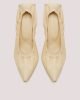 Κλασικές γόβες με ψηλό τακούνι σε μπεζ χρώμα, κατασκευασμένες από δέρμα με ελαστική λεπτομέρεια για κομψή εμφάνιση.