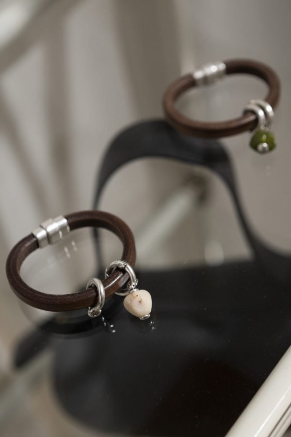 Κατασκευασμένο από γνήσιο δερμάτινο κορδόνι, με μαγνητικό κούμπωμα από ορείχαλκο/μπρούντζο και διακοσμημένο με μεταλλικό στοιχείο από zamak, αυτό το unisex κολιέ συνδυάζει κομψότητα με σύγχρονο σχεδιασμό, αποτελώντας ένα ευέλικτο αξεσουάρ για κάθε περίσταση.