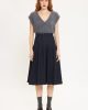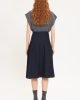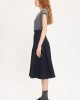 Μίντι φούστα από σκούρο μπλε denim, σχεδιασμένη με ψηλή μέση και απαλές πιέτες που προσφέρουν φυσική κίνηση. Η Α-γραμμή της τονίζει τη μέση διατηρώντας παράλληλα την άνεση και χαλαρότητα. Κατασκευασμένη από βαμβακερό ύφασμα ελαφρώς ελαστικό αποτελεί ένα βασικό κομμάτι που συνδυάζεται ιδανικά με πλεκτά ή πουκάμισα.