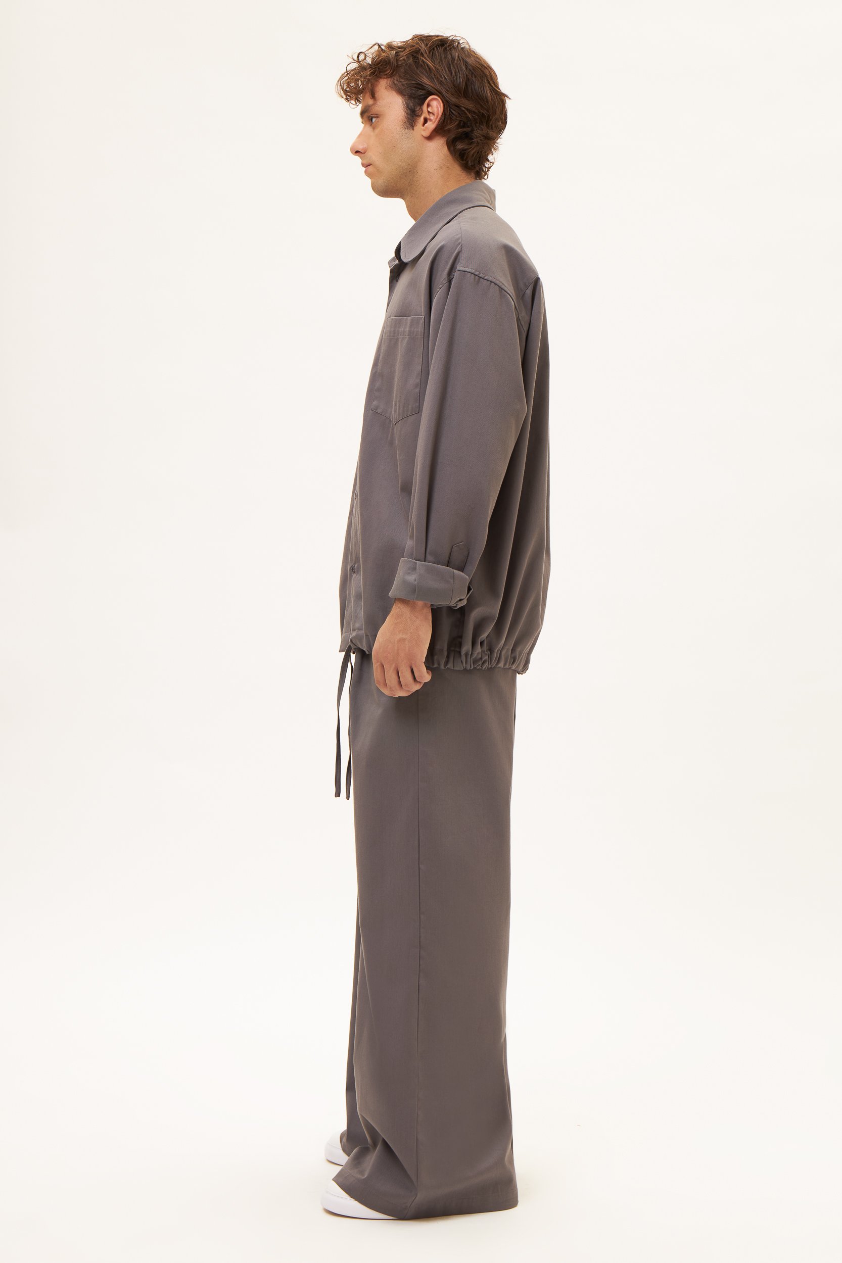 Gabardine Jacket with Adjustable Tunnel Cord Hem Grey