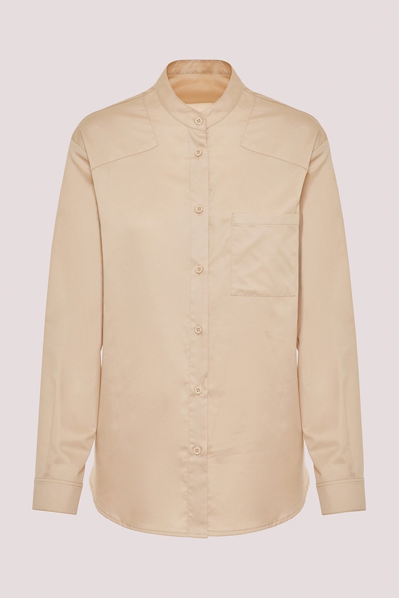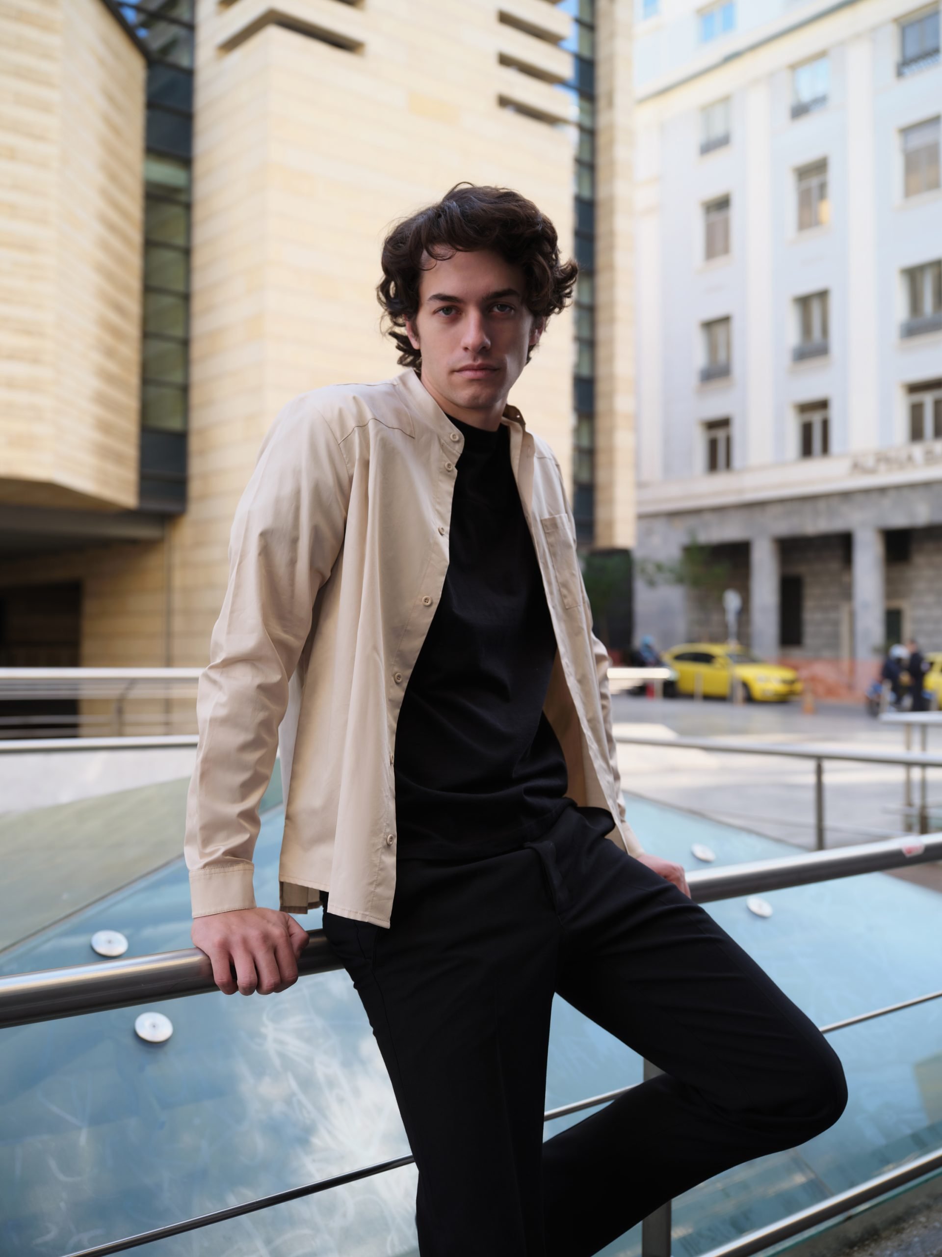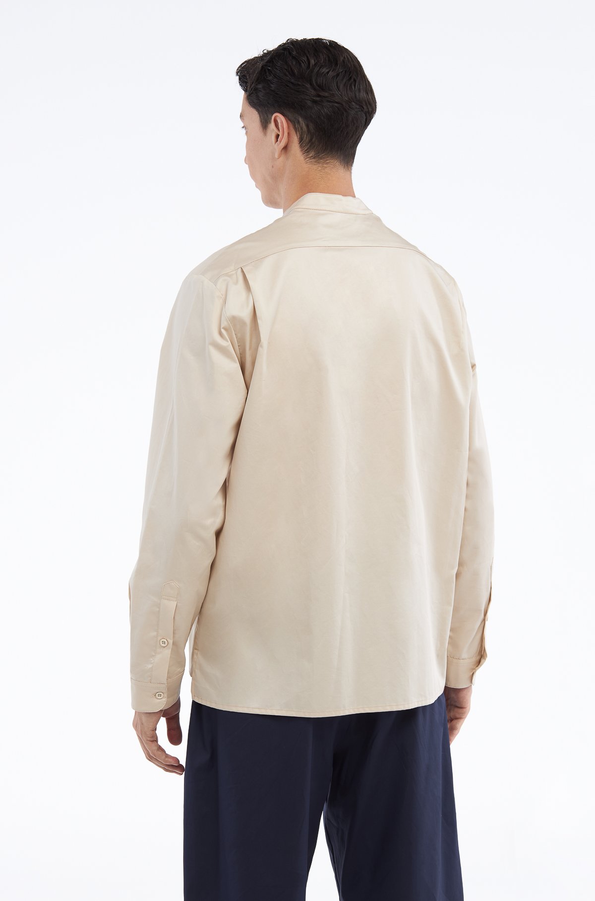 Crafted from 100% fine cotton poplin this elegant long-sleeved unisex shirt is collarless and features front button closure, straight hem and buttoned cuffs. Cut for a classic shape, it’s designed to sit neatly with room for movement through the chest and arms. Made in Greece. Model is 188 cm tall and wearing a size M.