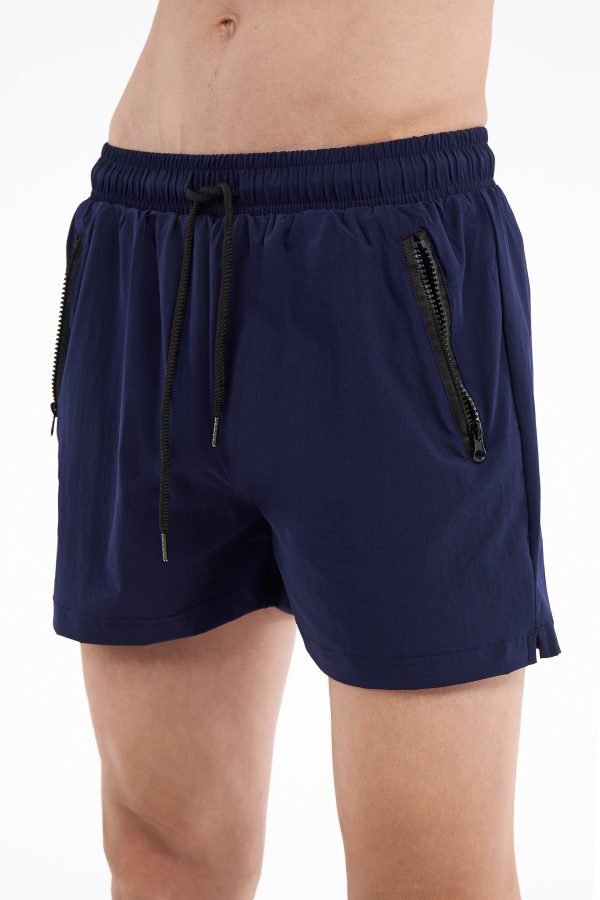 A must-have for your casual wardrobe, offering both style and practicality. These pants in dark blue feature side and back pockets, an elastic waistband, and adjustable drawstrings for a personalized fit. Model is 1,87cm tall and wearing a size M