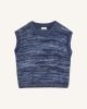 Sleeveless melange sweater vest, with a solid crew neck, crafted from a soft wool and viscose blend yarn. Available in two colors, blue and bordeaux, it features a normal length and loose fit, making it perfect for warm layering.