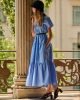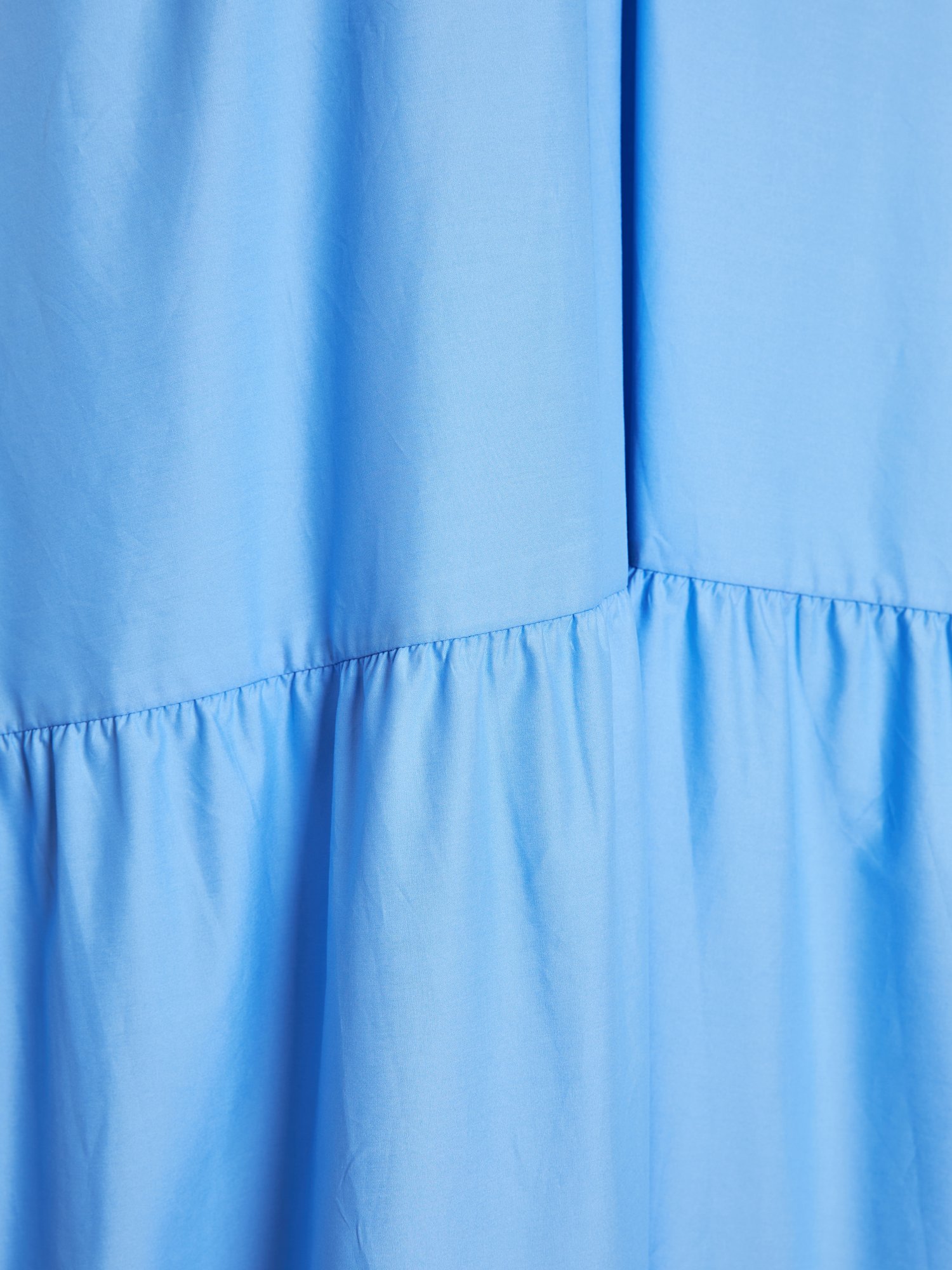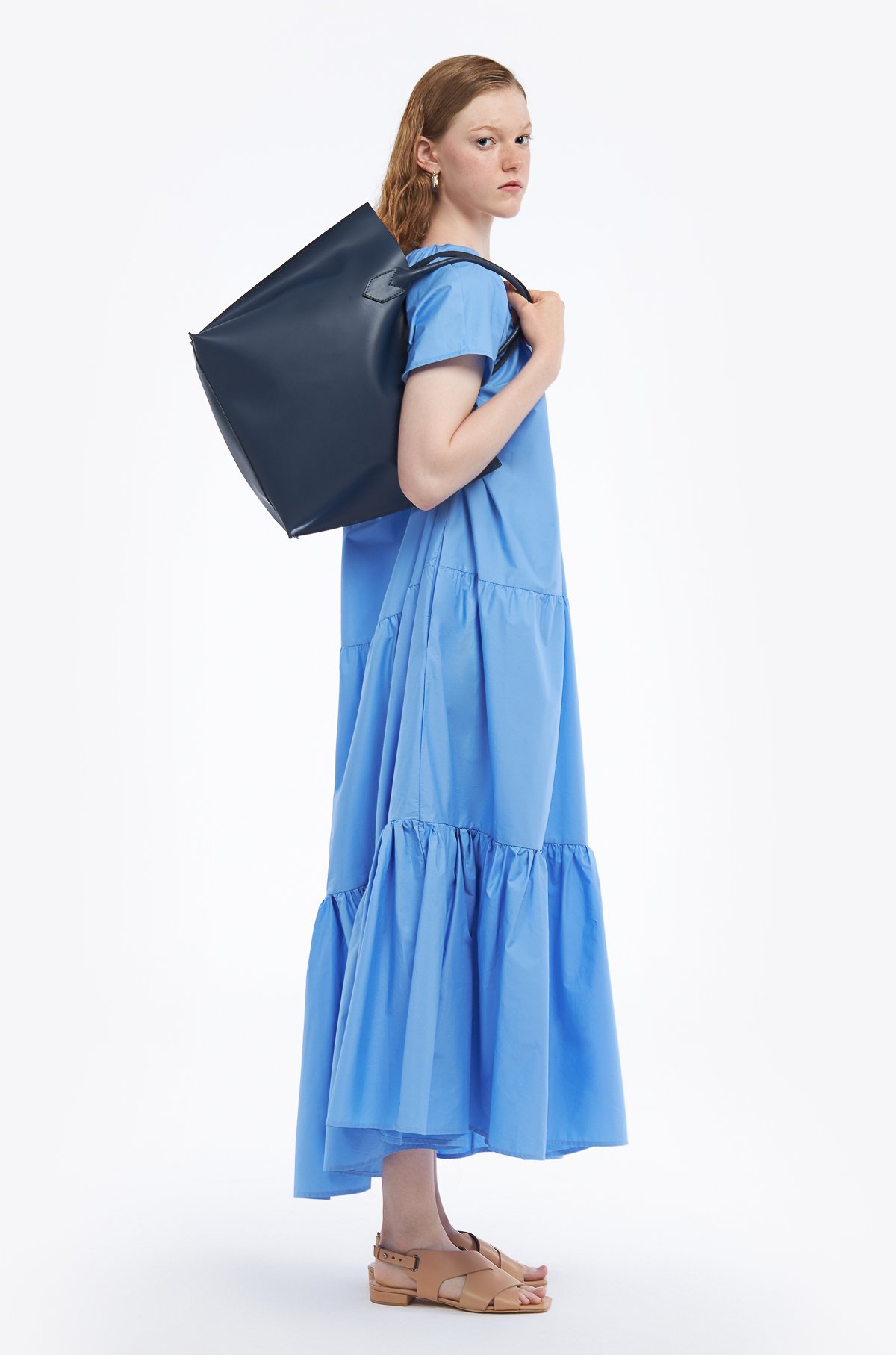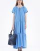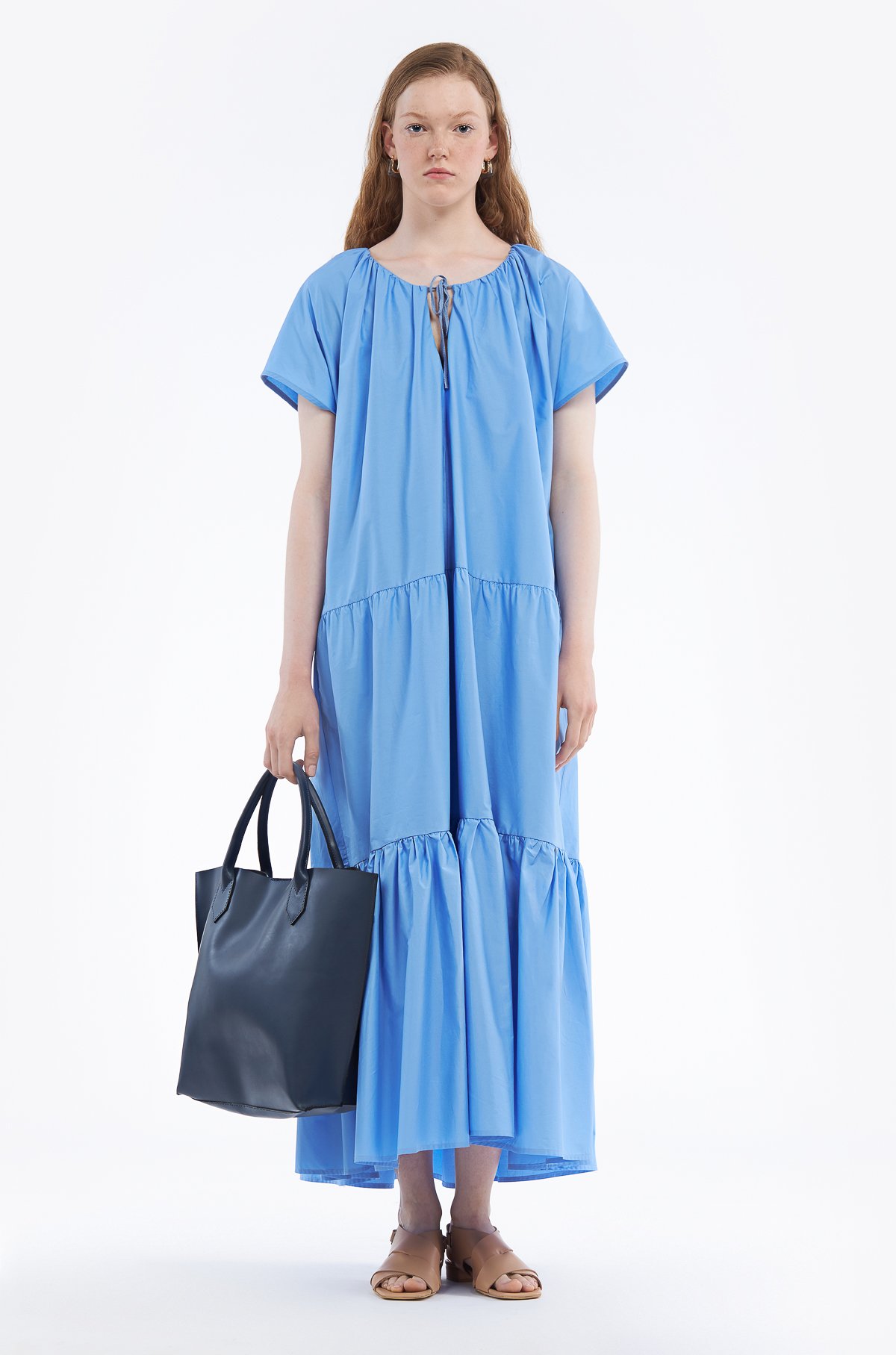 This tiered maxi dress is characterized by the ribbon tying detail in the neckline that gives the option of a deeper décolleté. Style it with sandals for the optimum casual elegant outfit or tie the waist with our black or brown belts.