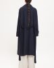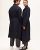 AOS signature forever tench is back in blue color. Crafted from 100% cotton canvas, this midi length oversized trench coat is a classic unisex piece that will always be relevant. Designed for contemporary people who seek urban yet quiet everyday outfits. Featuring pointed collars, belted waist, side pockets, inner lining and front button closure.