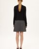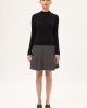 College-inspired short dress combining knitted upper part with pleated wool skirt. The lower part complements beautifully with the knitted high neck upper part, offering texture and structure. Its short length adds a playful, youthful touch, making it a perfect choice for contemporary everyday wear.