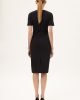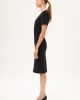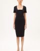 Fitted midi black dress made for sophistication and comfort and crafted from the punto roma fabric. Known for its exceptional stretch and resilience, the fabric offers a body-contouring fit that flatters your figure while providing a comfortable feel.