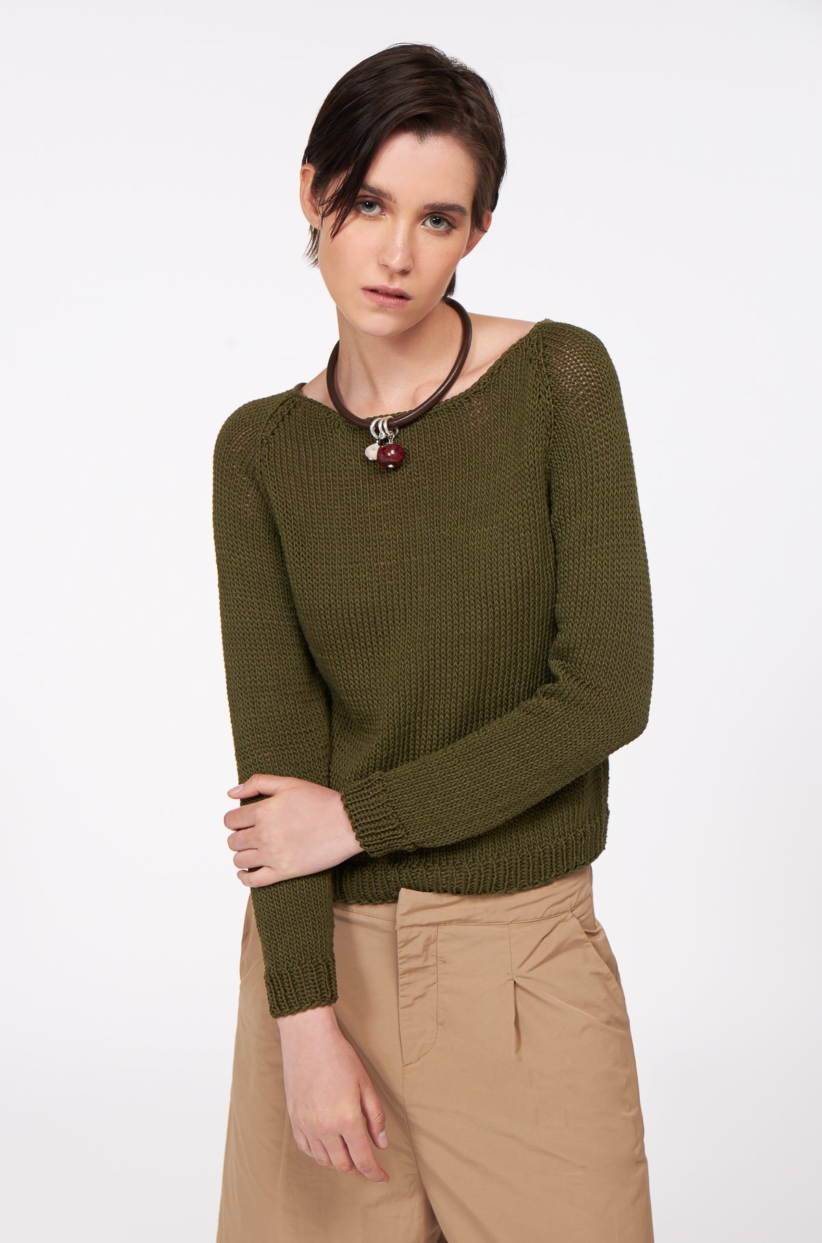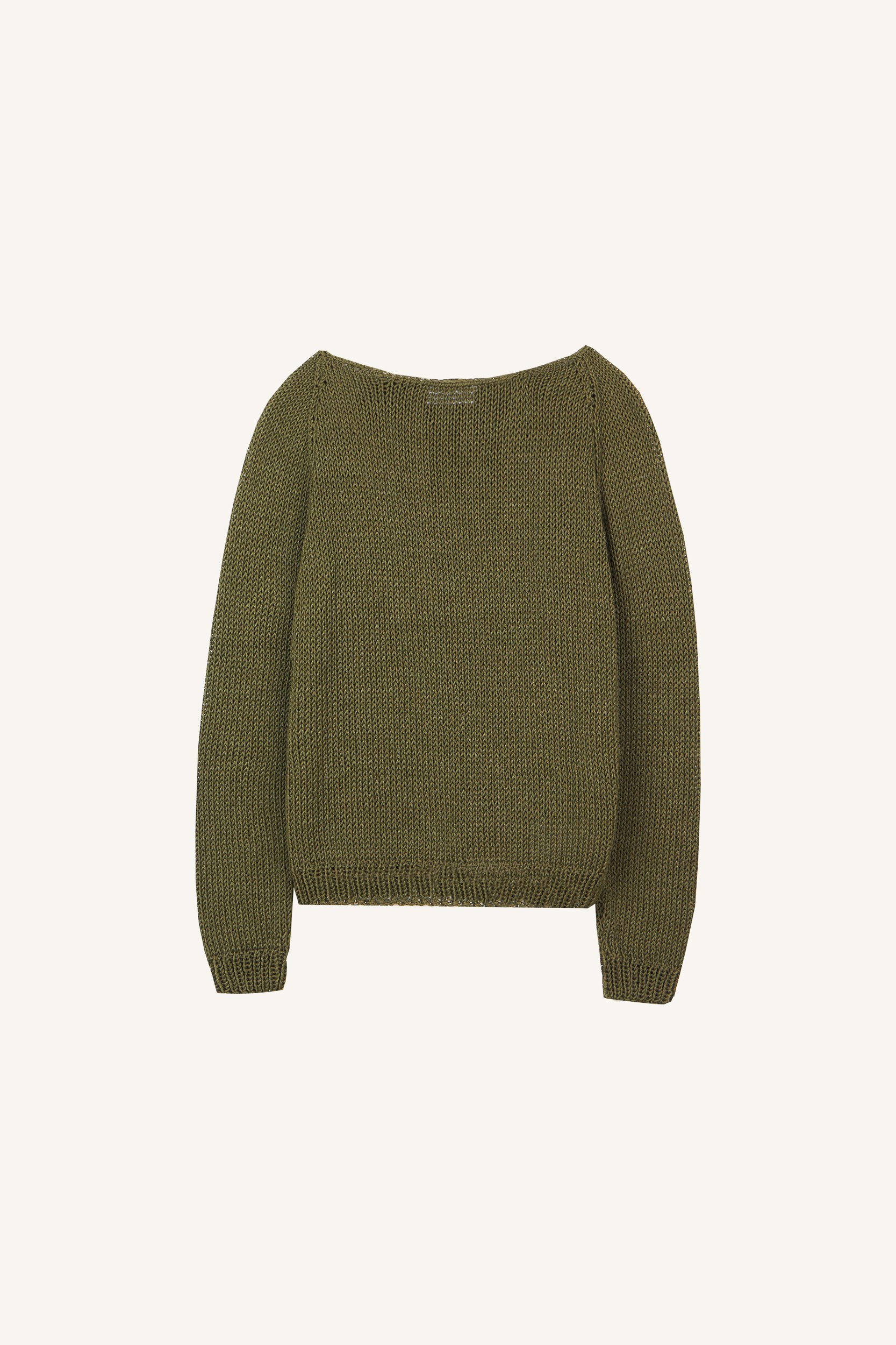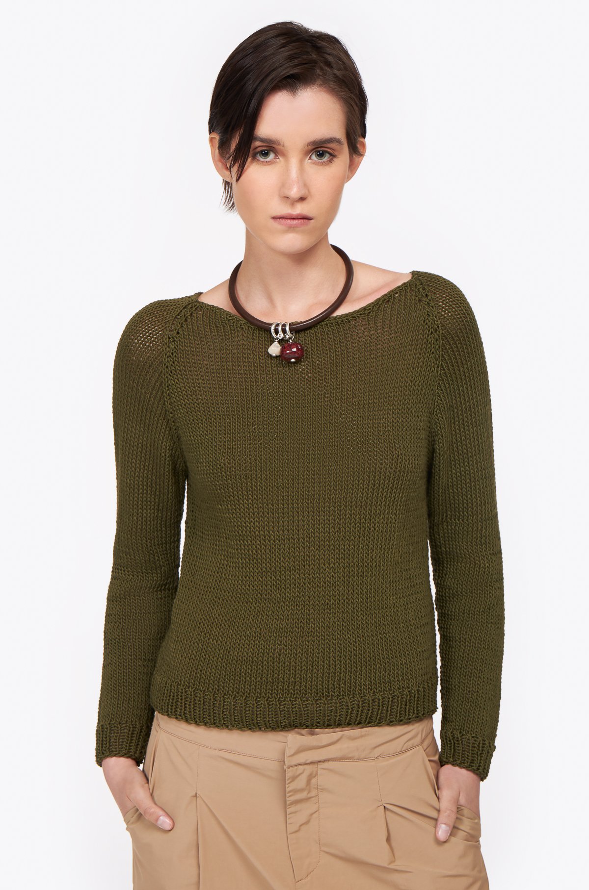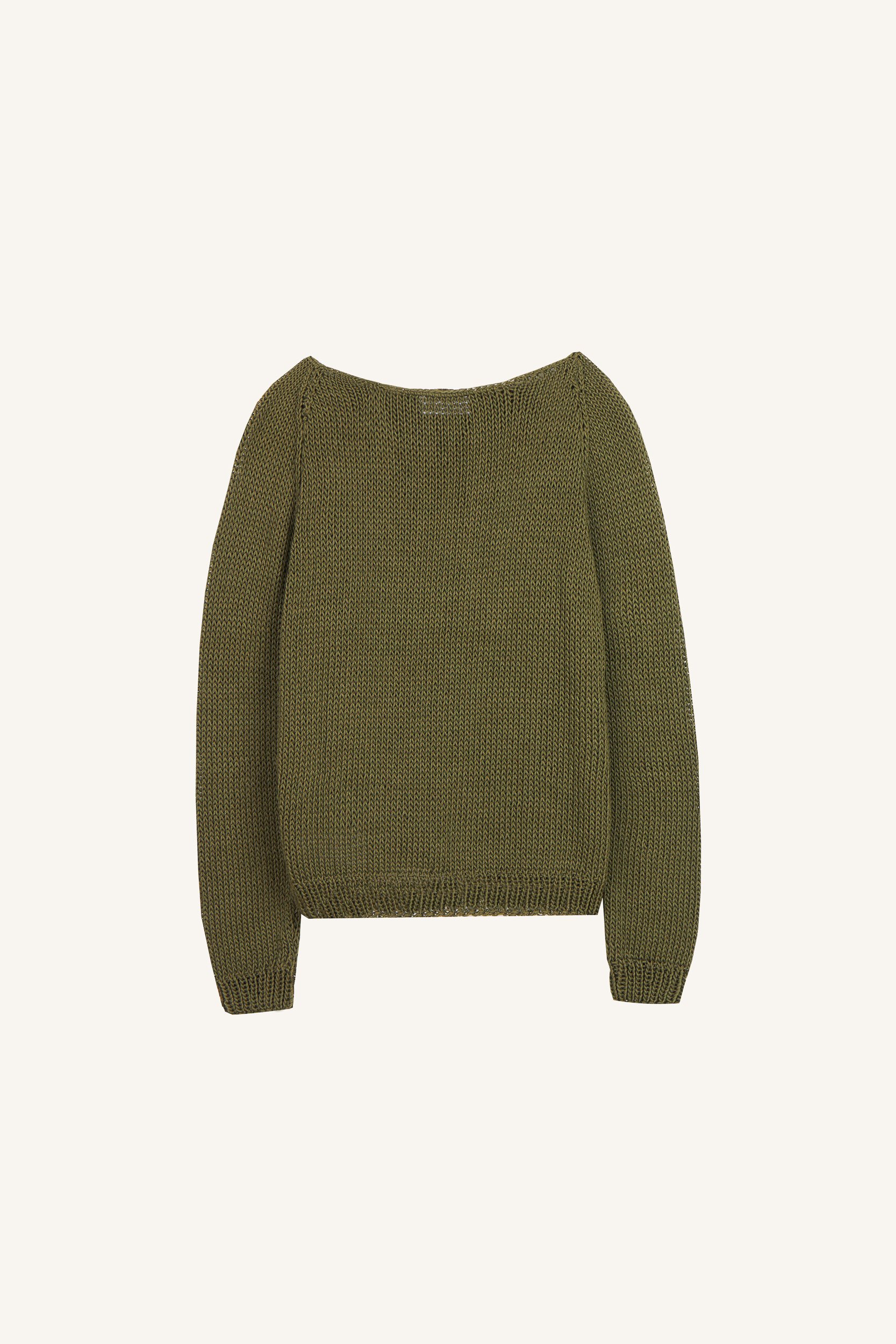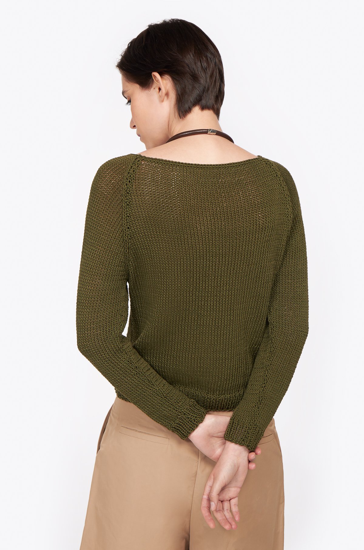 Cropped hand-knitted sweater—adds a touch of artisanal craftsmanship to your wardrobe. Featuring a crop length, it is designed with cuffed sleeves and hem. The soft knit texture not only provides warmth but also brings an element of cozy sophistication to your everyday look. Whether paired with jeans or layered over a dress, this sweater effortlessly blends style and comfort, making it a versatile piece for the colder months.