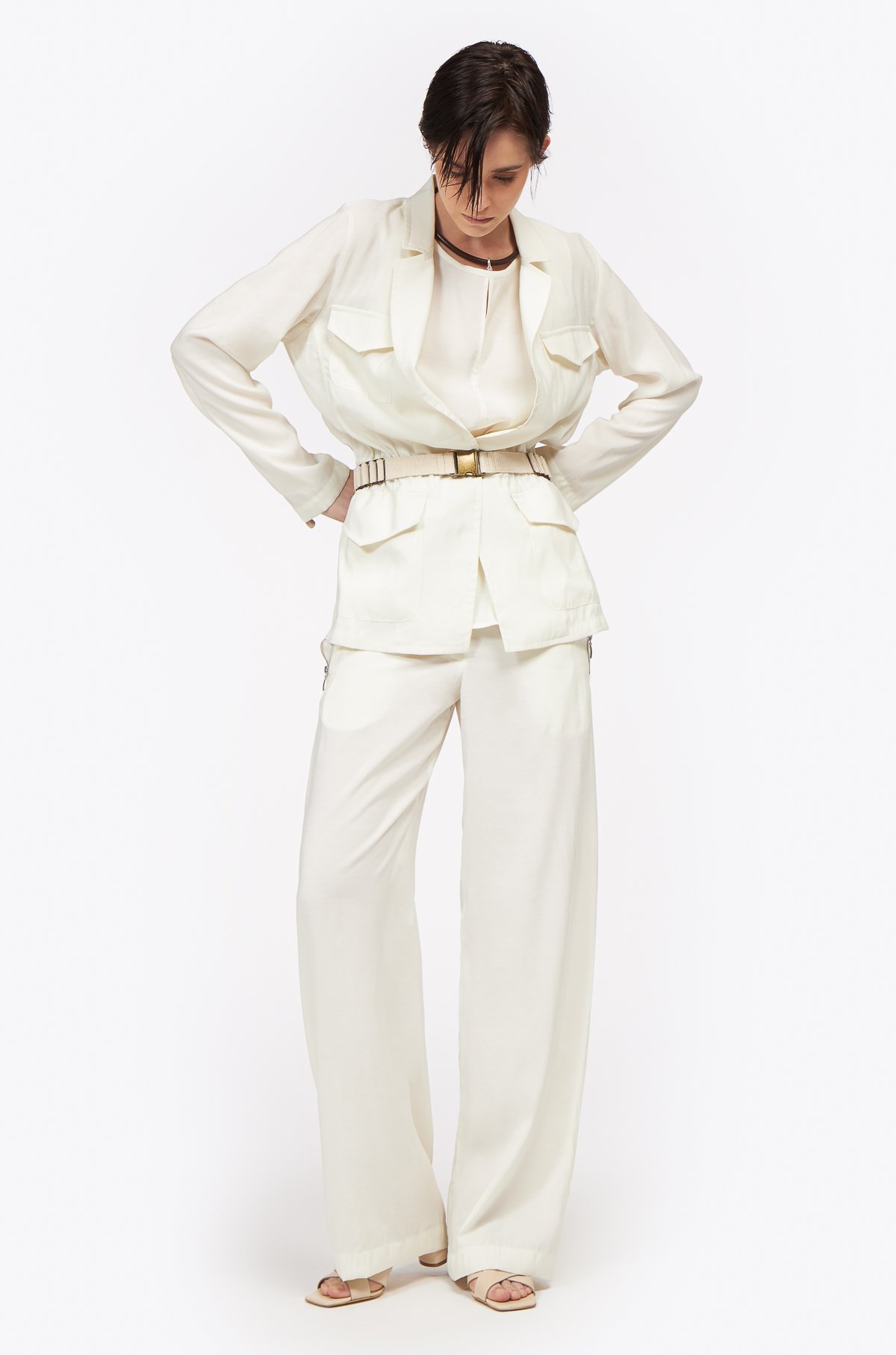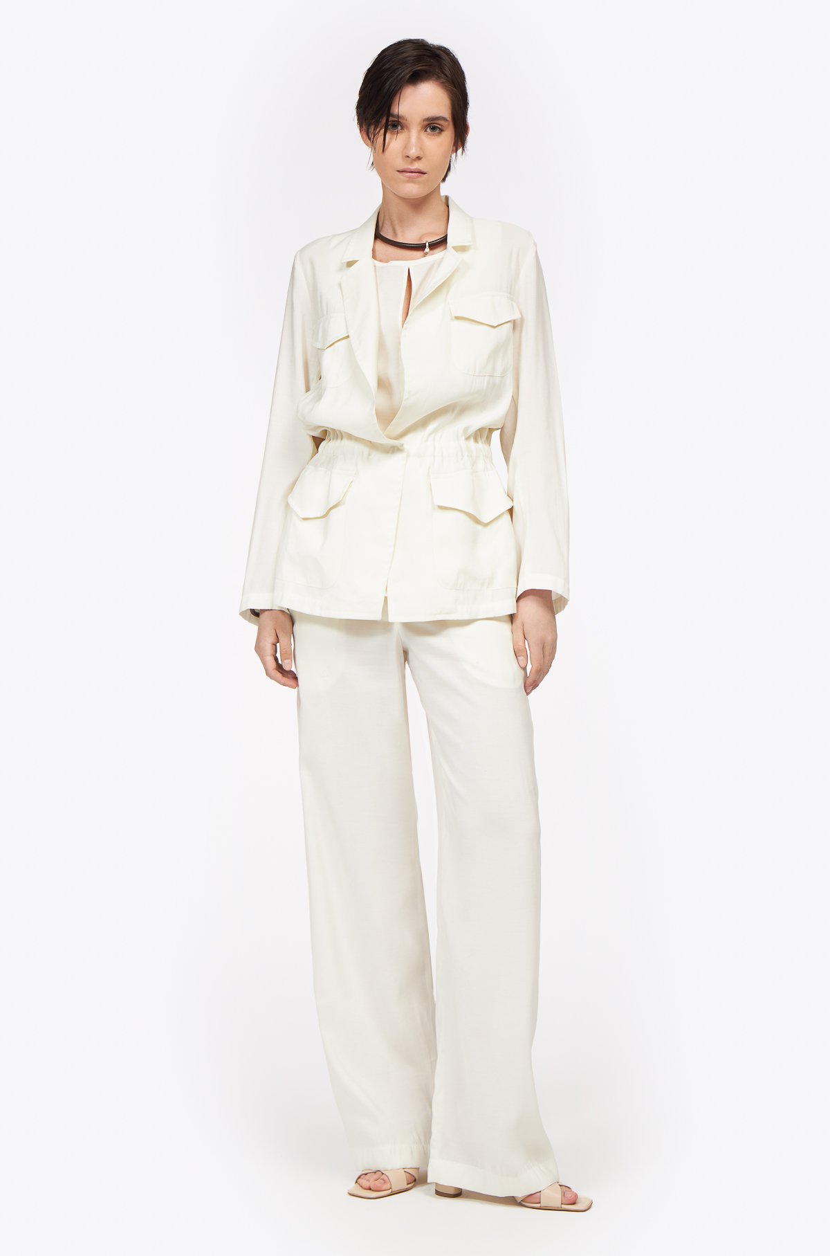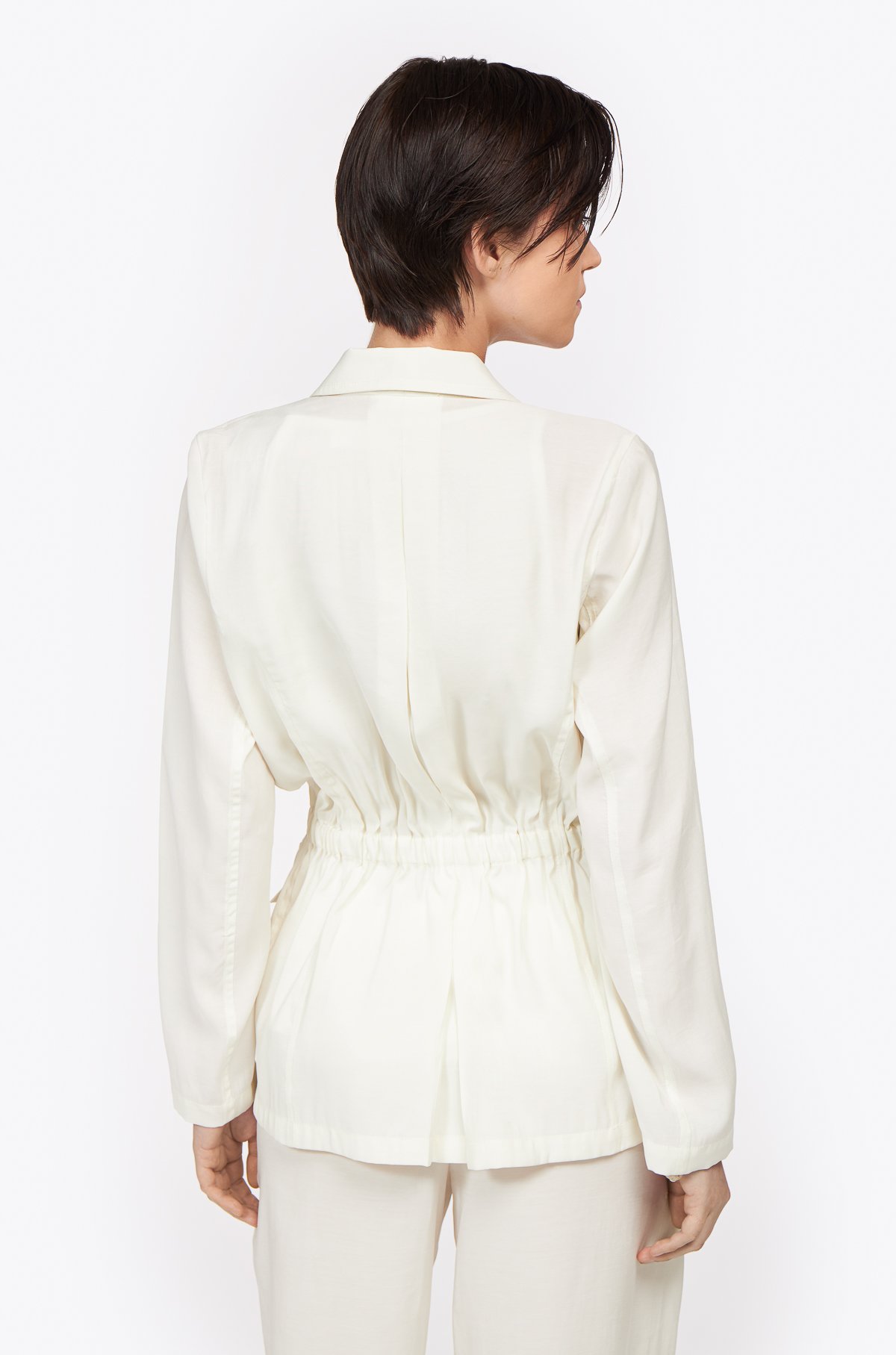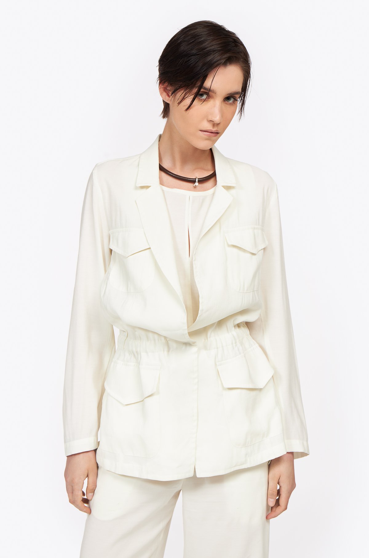 Timeless qualitative drawstring jacket crafted from rayon. This relaxed style featured two decorative chest pockets and another two at the front is a must have for the summer, and concealed pleat at the back.